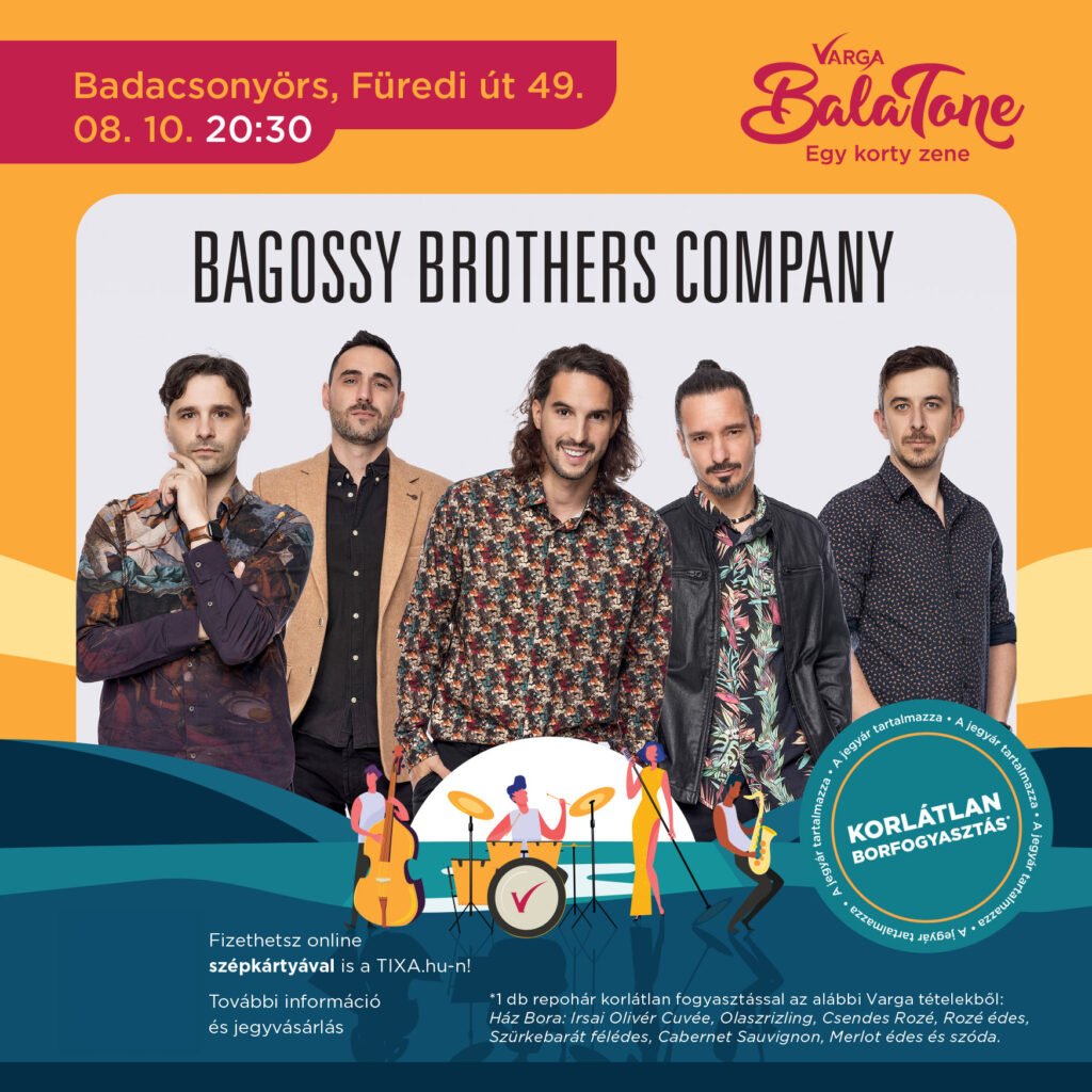 Az est második felében a közönség kedvence, az Erdélyből indult, de mára országosan ismert és elismert Bagossy Brothers Company veszi át a színpadot. A zenekar a folkos dallamokat ötvözi a modern indie és alternatív rock elemeivel, így teremtve egyedi, könnyen felismerhető hangzást. A testvérpár által alapított formáció őszinte, életigenlő dalszövegei és sodró lendületű koncertjei több generációhoz is szólnak. Slágereik – mint a “Olyan Ő”“Van egy ház” vagy a “Valahol itt” – méltán lettek a hazai rádiós játszási listák és fesztiválok állandó szereplői.