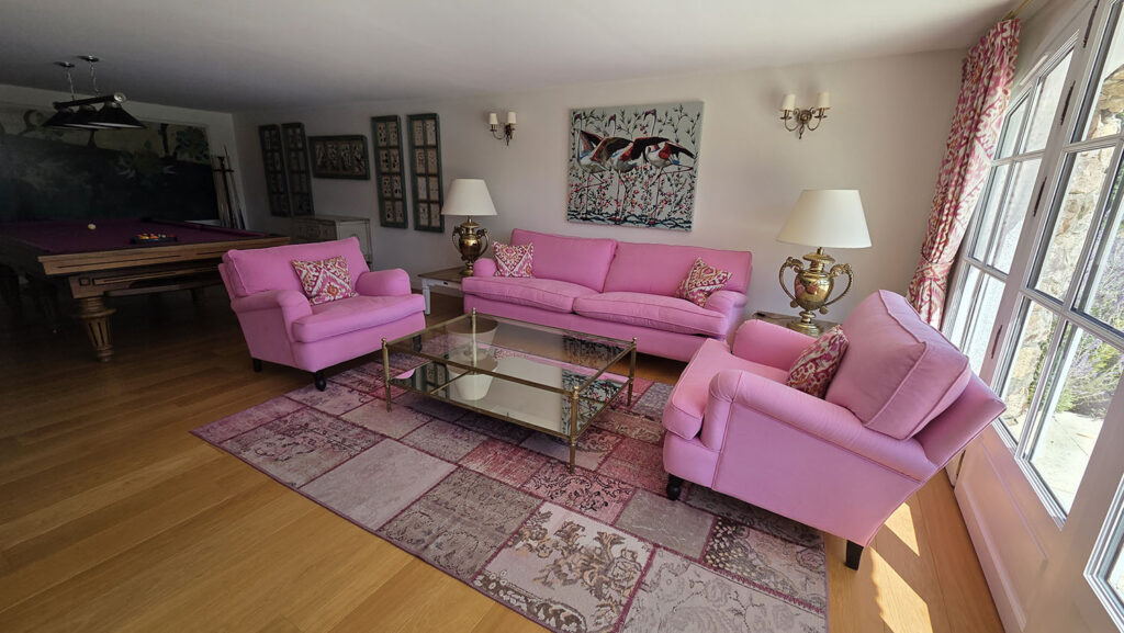 A kúria belső terei egyszerre franciásan elegánsak és barátságosak: terrakotta padló, nyitott kandallók, antik bútorok, kortárs művészeti alkotások a falakon. A vacsoránk helyszíne modern showroom és privát szalon, ultramodern látványkonyhával, rusztikus bútorzattal, meleg színekkel; a kezdeti megilletődöttség után nagyon gyorsan otthonosan érezzük magunkat, ami az elfogyasztott fogások (és a birtok csúcsboraival való alapos ismerkedés) után tovább fokozódik.