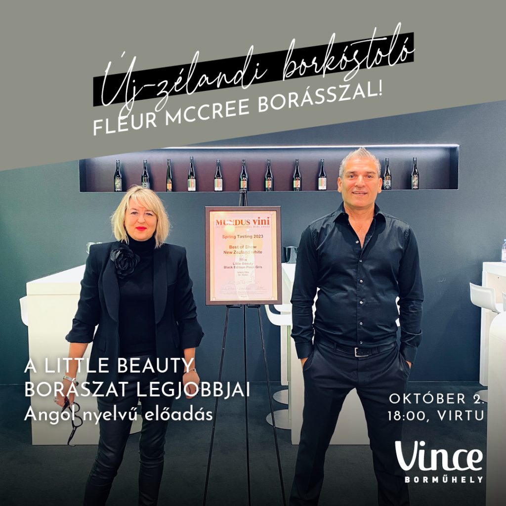 Borkóstoló a kivik földjéről! Ismerd meg a Gyűrűk Ura vidékének kevésbé ismert borait! Fleur McCree, a Little Beatuy borásza érkezik Budapestre, hogy a Vince Borműhely keretében bemutassa új-zélandi borkülönlegességeit a Vince követőknek. Csatlakozz a soha vissza nem térő alkalomhoz!